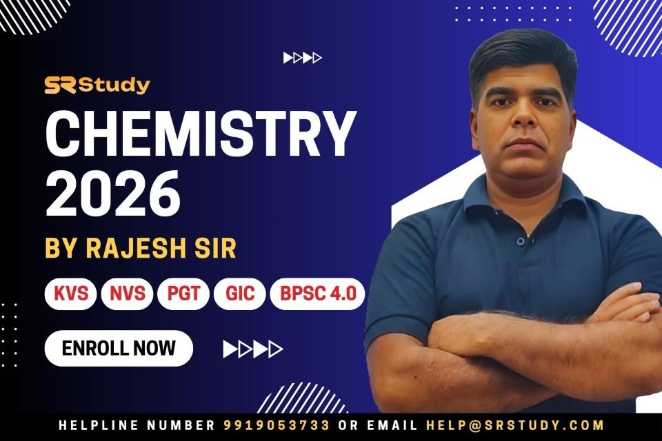 Prepare for excellence in the Chemistry 2026 Course at SR Study, expertly curated and led by Rajesh Tiwari Sir. This course is a result-oriented program specifically designed for aspirants aiming to clear high-stakes teaching exams including KVS, NVS, PGT, GIC, and the upcoming BPSC 4.0.